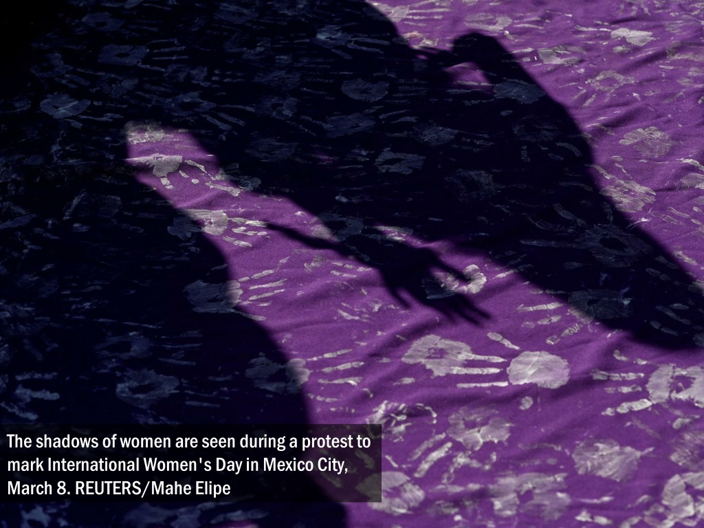 The shadows of women are seen during a protest to mark International Women's Day in Mexico City, March 8. REUTERS/Mahe Elipe