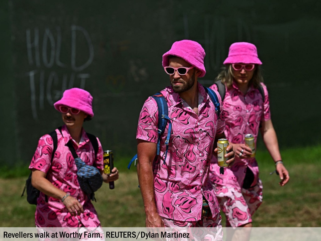 Revellers make their way through Worthy Farm. REUTERS/Dylan Martinez