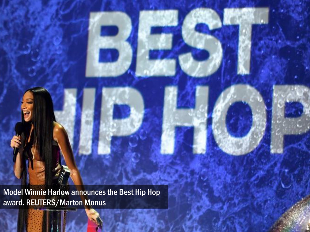 Model Winnie Harlow announces the Best Hip Hop award. REUTERS/Marton Monus