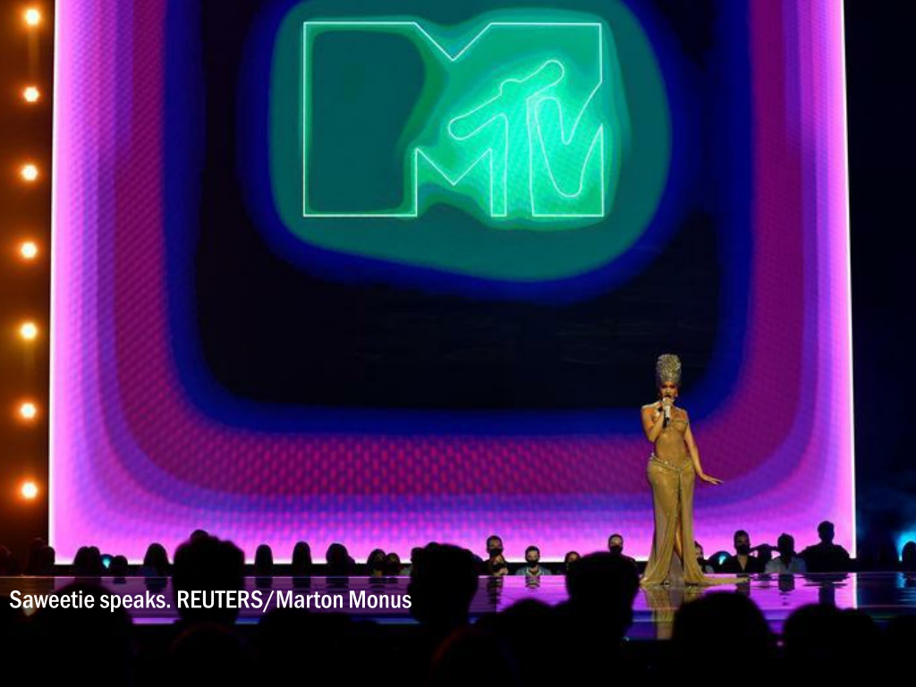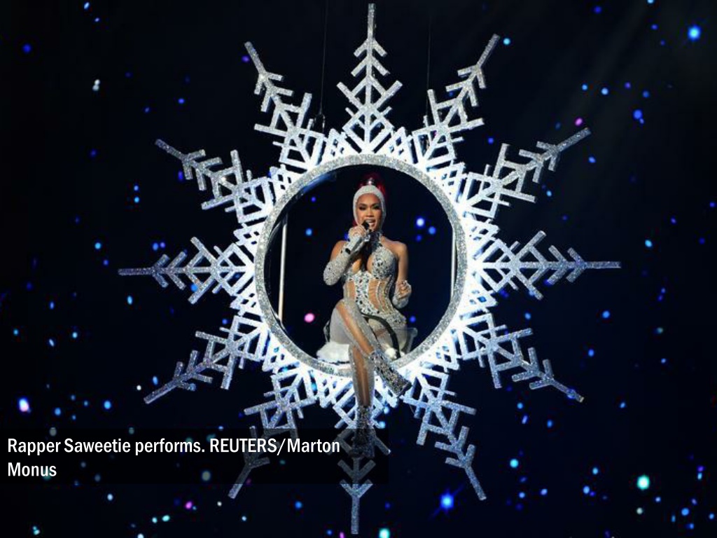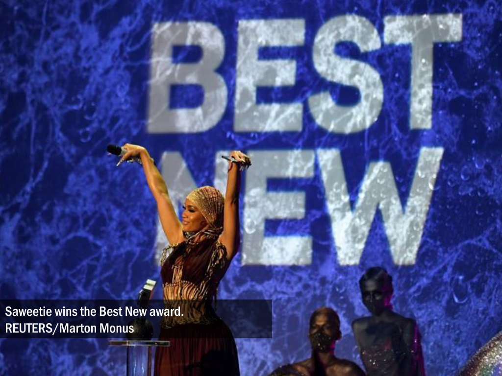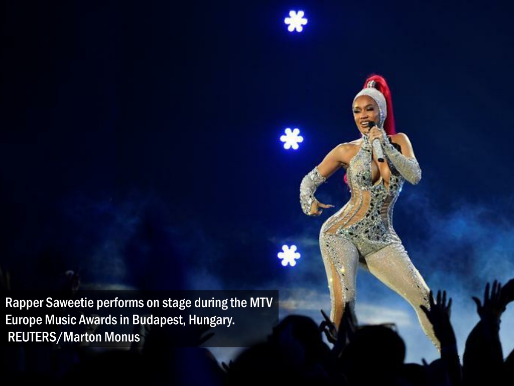 Rapper Saweetie performs on stage during the MTV Europe Music Awards in Budapest, Hungary. REUTERS/Marton Monus