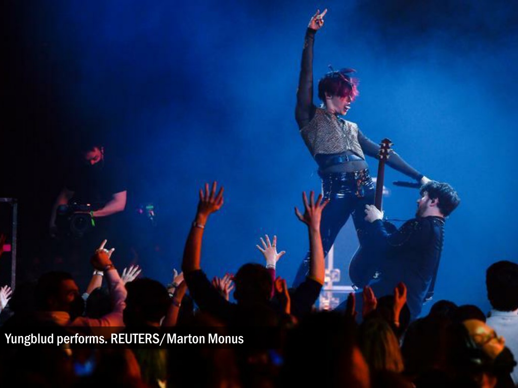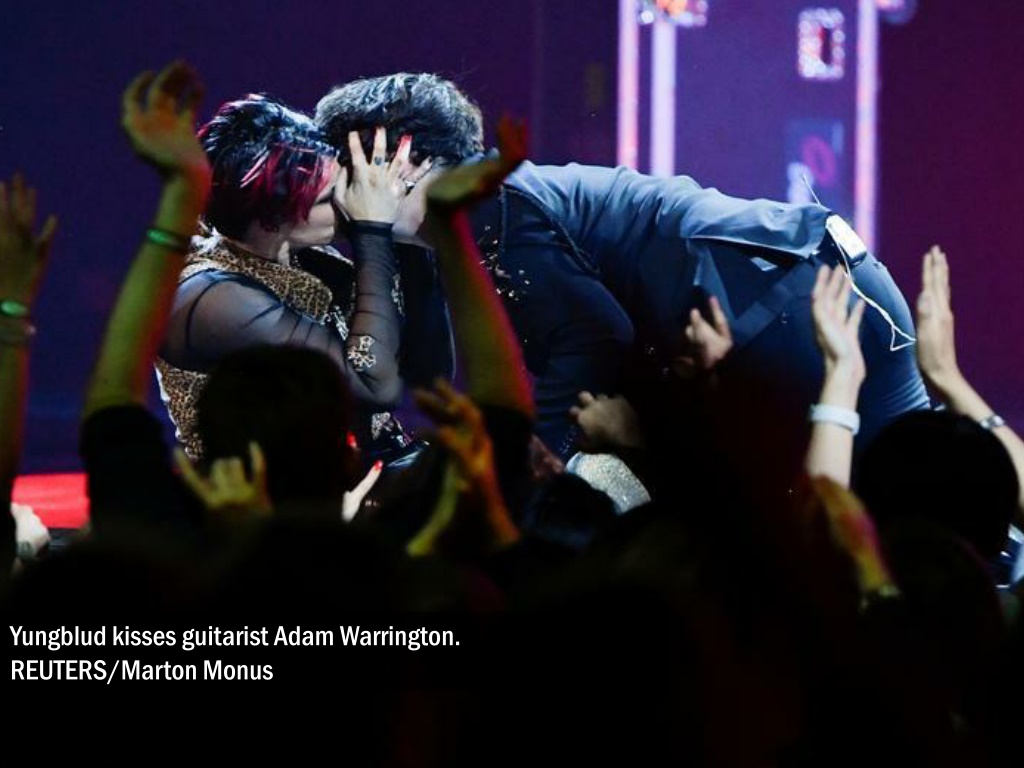 Yungblud kisses guitarist Adam Warrington. REUTERS/Marton Monus
