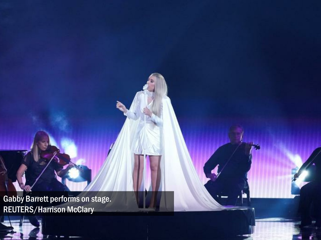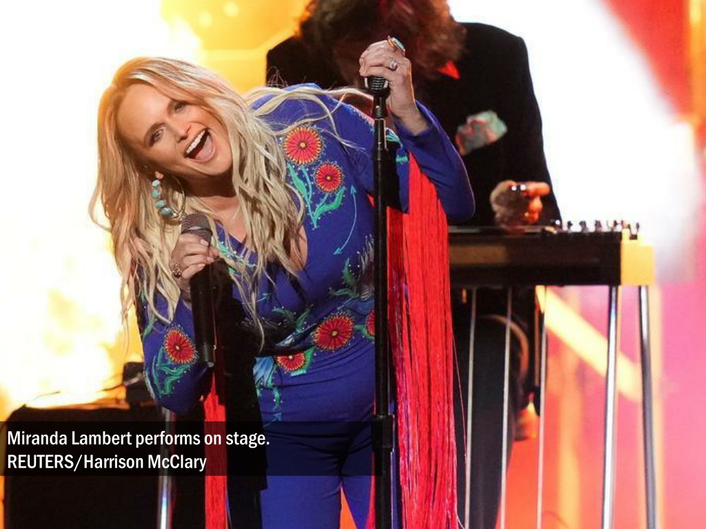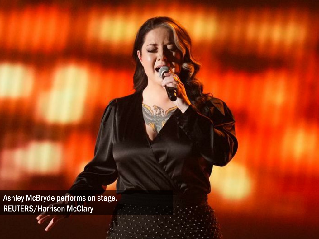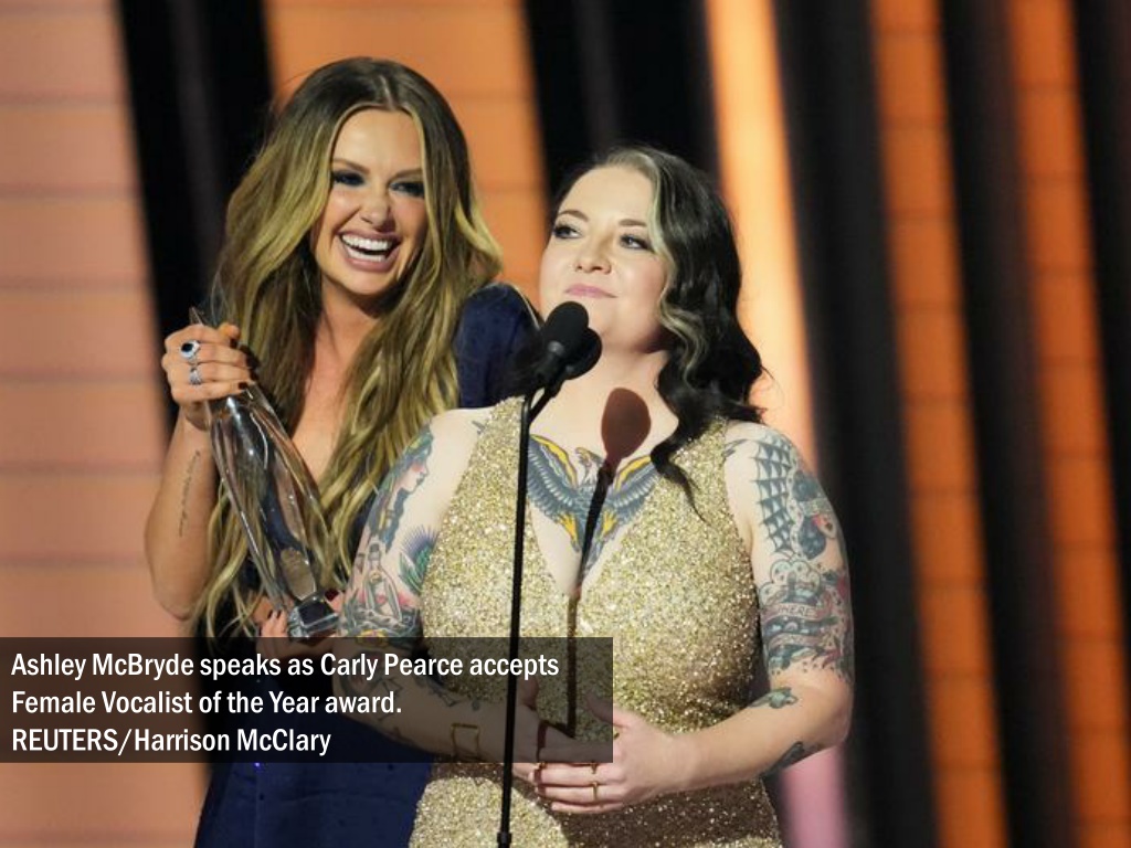 Ashley McBryde speaks as Carly Pearce accepts Female Vocalist of the Year award. REUTERS/Harrison McClary