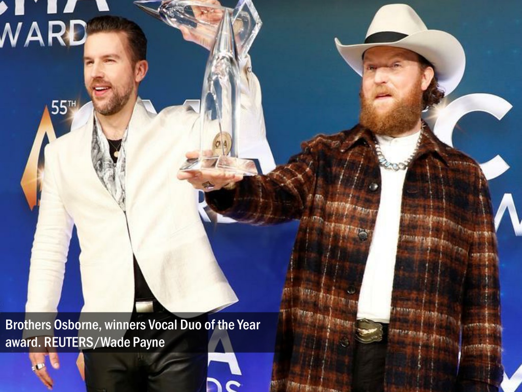 Brothers Osborne, winners Vocal Duo of the Year award. REUTERS/Wade Payne