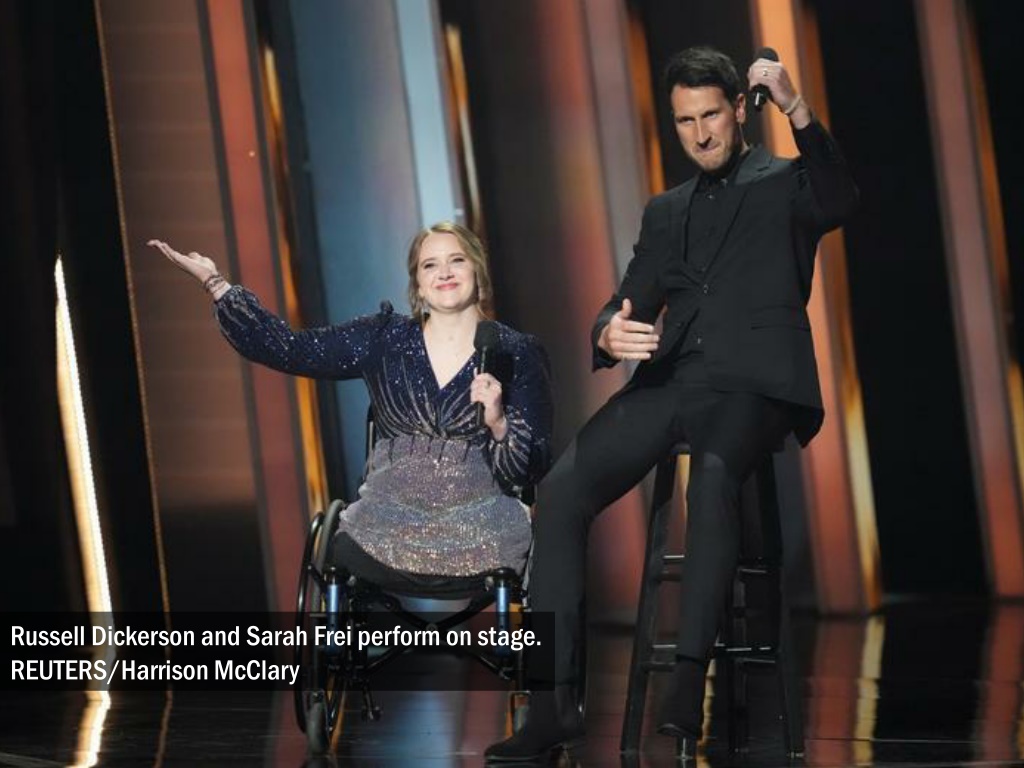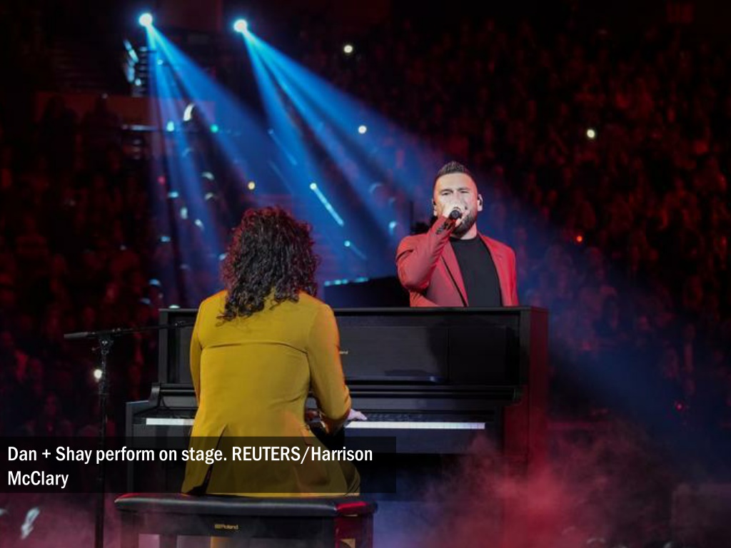 Russell Dickerson and Sarah Frei perform on stage. REUTERS/Harrison McClary