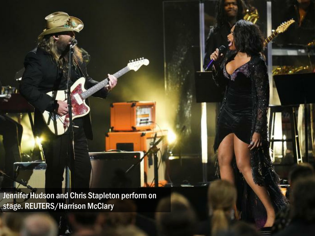Jennifer Hudson and Chris Stapleton perform on stage. REUTERS/Harrison McClary