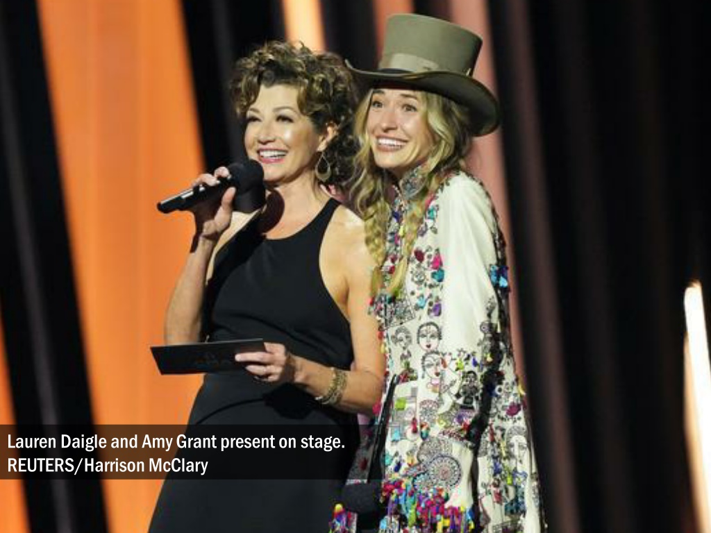 Lauren Daigle and Amy Grant present on stage. REUTERS/Harrison McClary