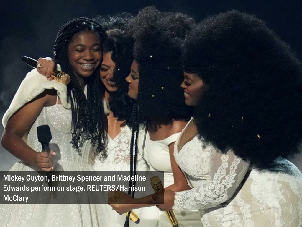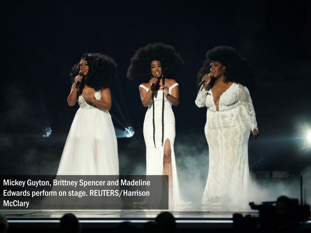 Mickey Guyton, Brittney Spencer and Madeline Edwards perform on stage. REUTERS/Harrison McClary