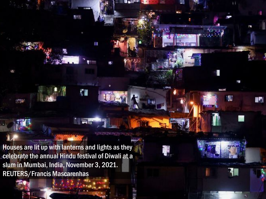 Houses are lit up with lanterns and lights as they celebrate the annual Hindu festival of Diwali at a slum in Mumbai, India, November 3, 2021. REUTERS/Francis Mascarenhas