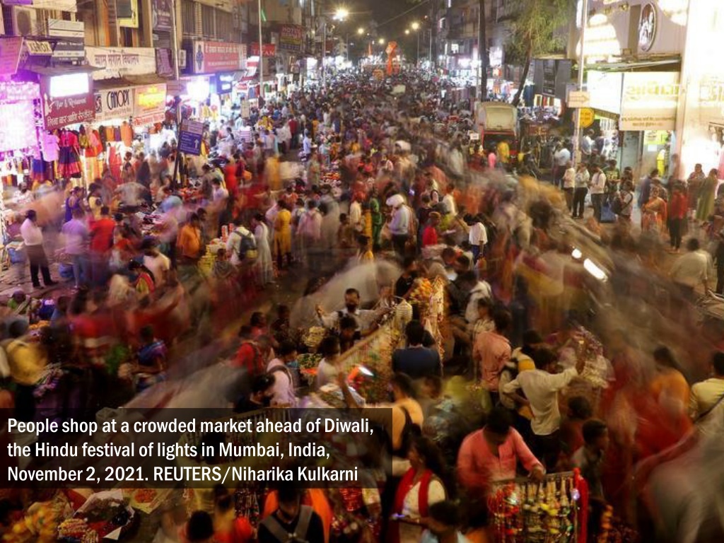 People shop at a crowded market ahead of Diwali, the Hindu festival of lights in Mumbai, India, November 2, 2021. REUTERS/Niharika Kulkarni