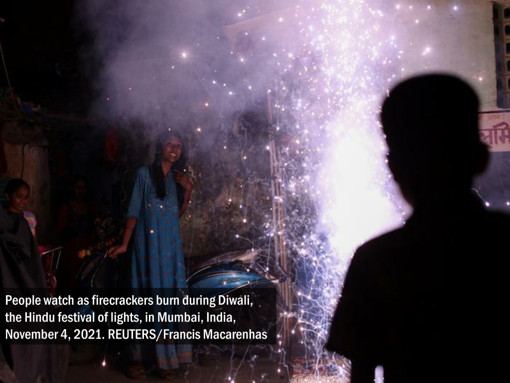 People watch as firecrackers burn during Diwali, the Hindu festival of lights, in Mumbai, India, November 4, 2021. REUTERS/Francis Macarenhas