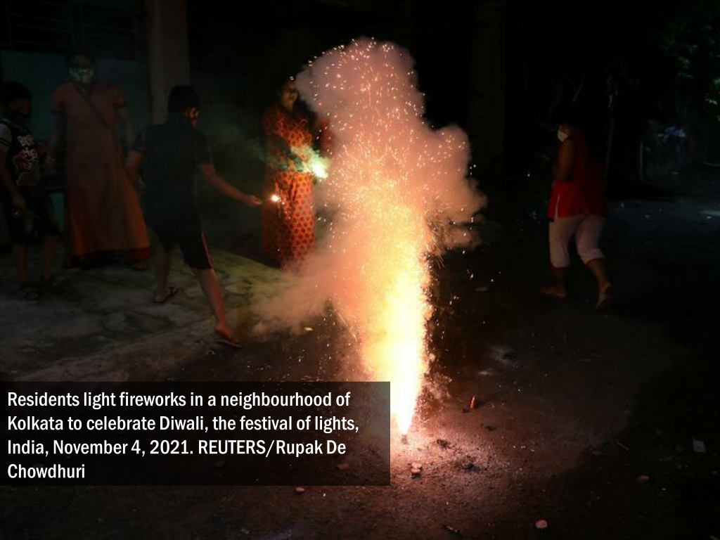 Residents light fireworks in a neighbourhood of Kolkata to celebrate Diwali, the festival of lights, India, November 4, 2021. REUTERS/Rupak De Chowdhuri