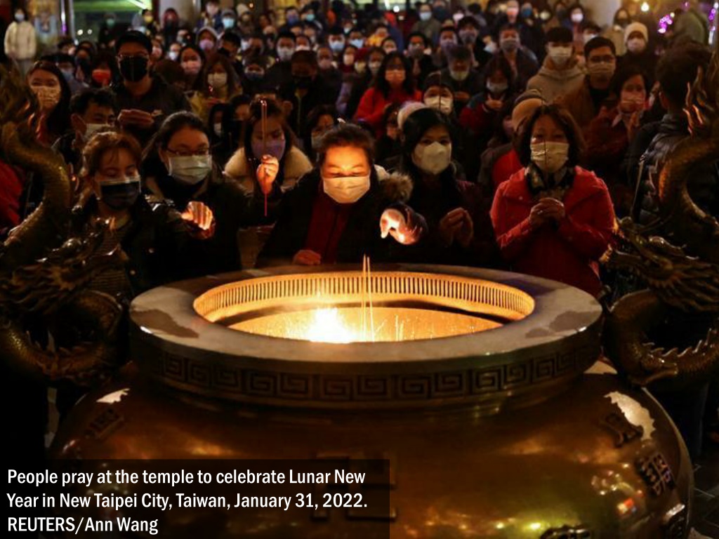 People pray at the temple to celebrate Lunar New Year in New Taipei City, Taiwan, January 31, 2022. REUTERS/Ann Wang