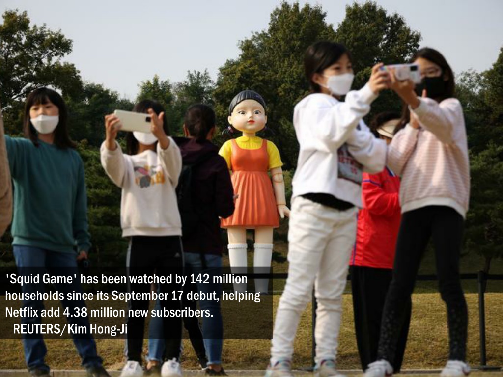 'Squid Game' has been watched by 142 million households since its September 17 debut, helping Netflix add 4.38 million new subscribers. REUTERS/Kim Hong-Ji