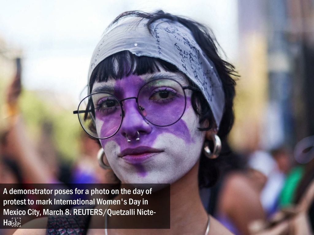 A demonstrator poses for a photo on the day of protest to mark International Women's Day in Mexico City, March 8. REUTERS/Quetzalli Nicte-Ha .