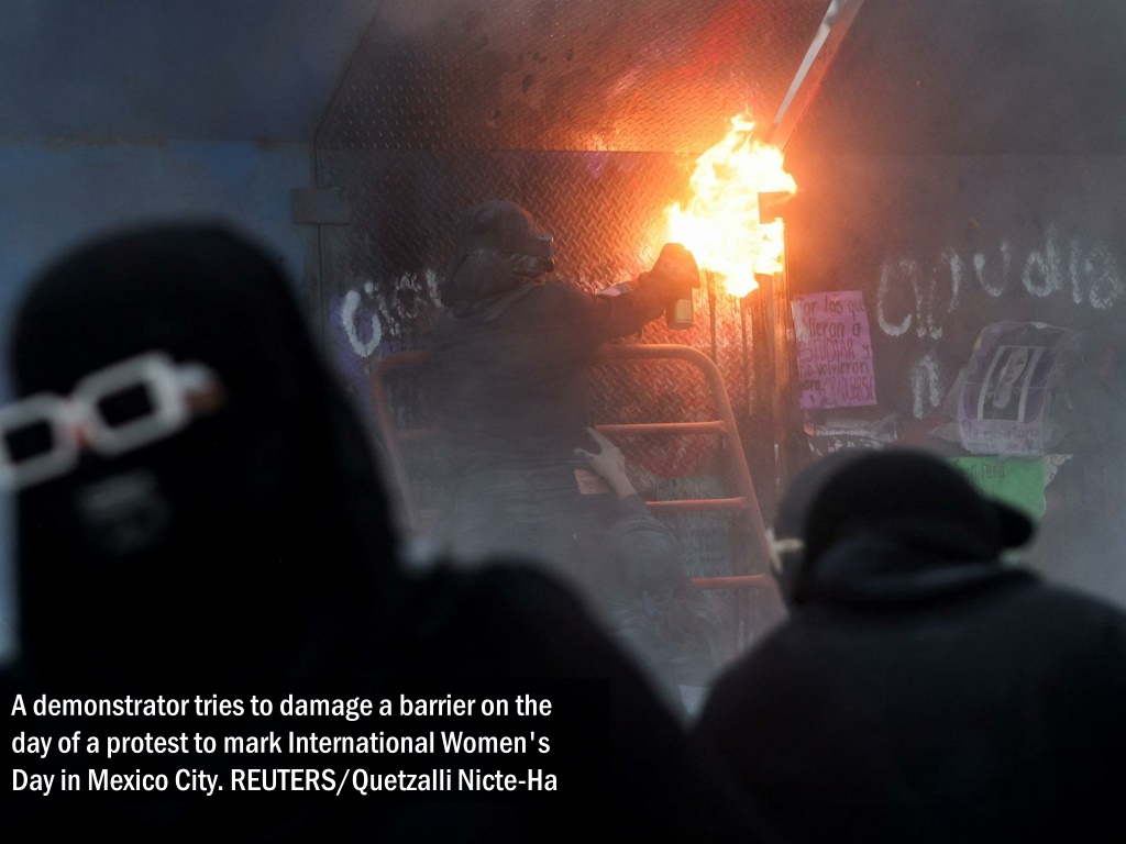 Demonstrators take part in a protest to mark International Women's Day in Mexico City, March 8. REUTERS/Mahe Elipe
