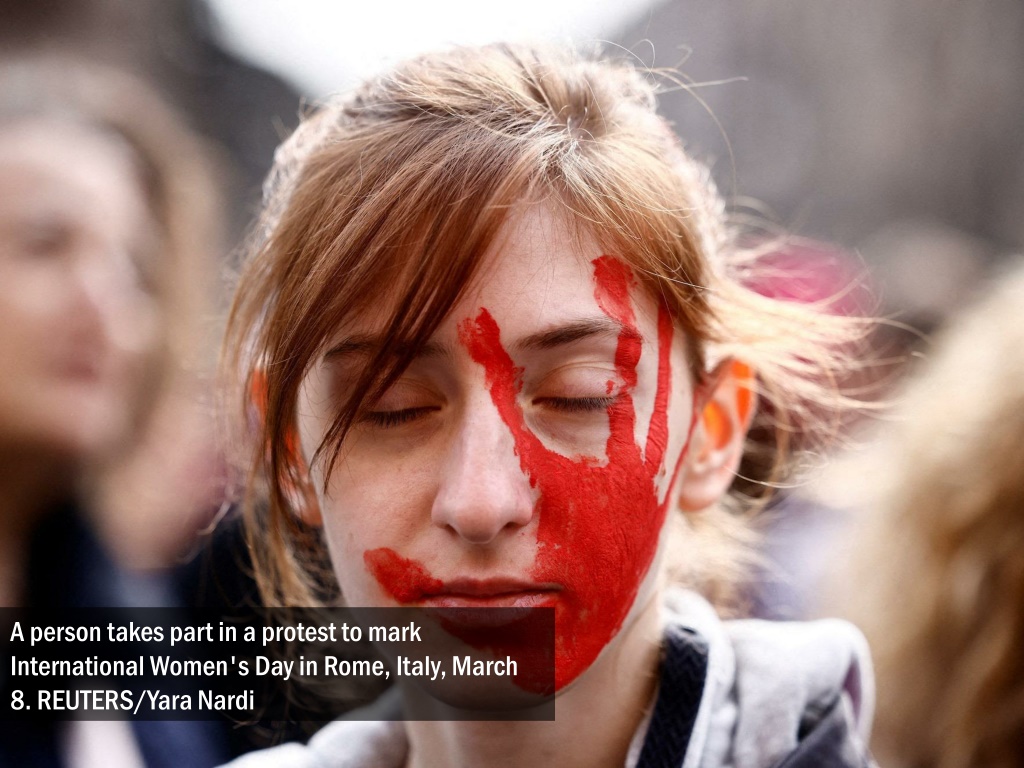 Images from International Women's Day marches and events around the world.