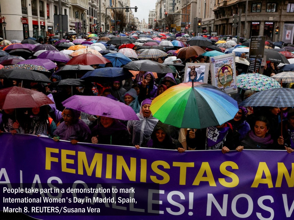 People take part in a demonstration to mark International Women's Day in Madrid, Spain, March 8. REUTERS/Susana Vera