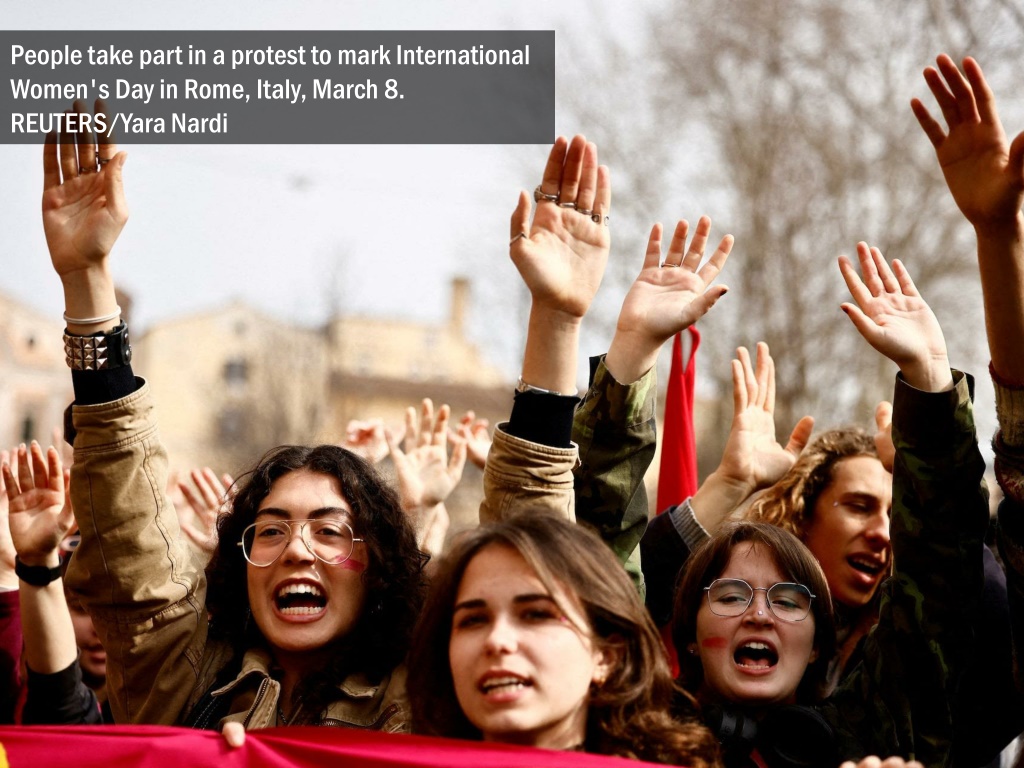 People take part in a protest to mark International Women's Day in Rome, Italy, March 8. REUTERS/Yara Nardi