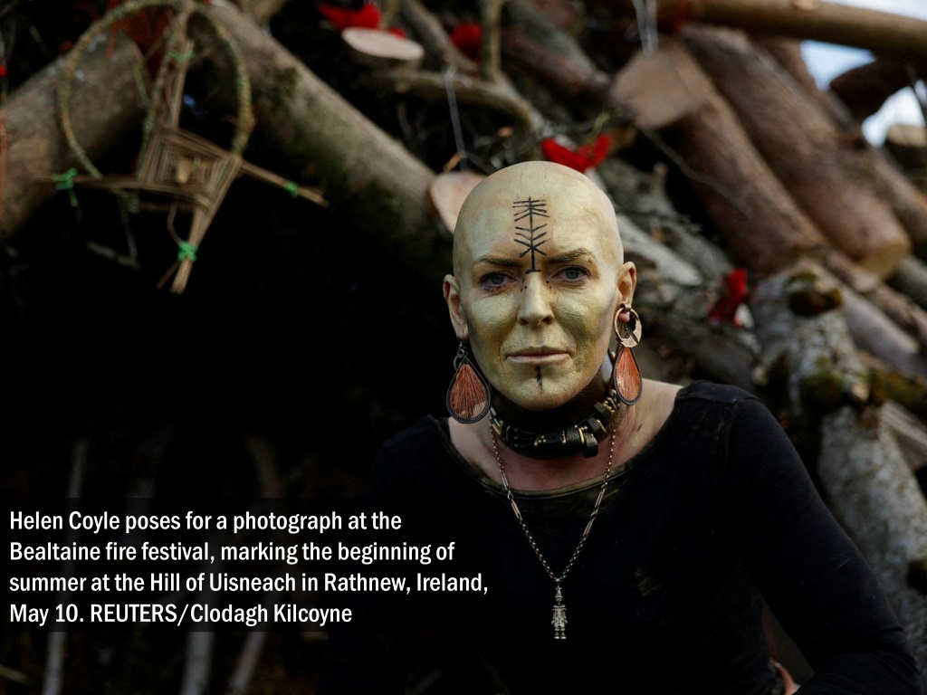 Helen Coyle poses for a photograph at the Bealtaine fire festival, marking the beginning of summer at the Hill of Uisneach in Rathnew, Ireland, May 10. REUTERS/Clodagh Kilcoyne