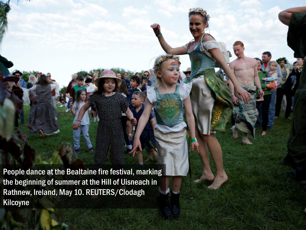People dance at the Bealtaine fire festival, marking the beginning of summer at the Hill of Uisneach in Rathnew, Ireland, May 10. REUTERS/ClodaghKilcoyne