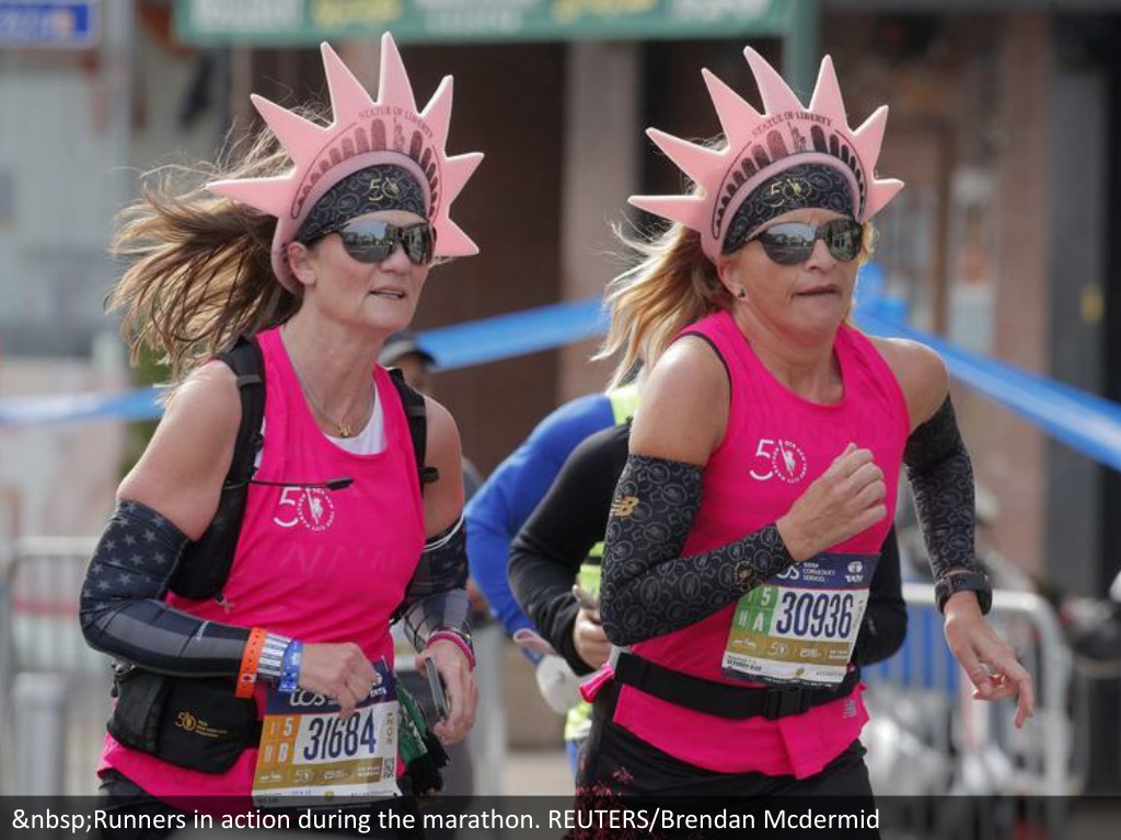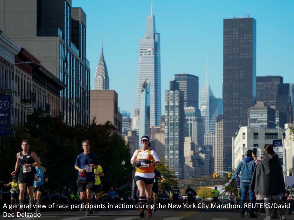 A general view of race participants in action during the New York City Marathon. REUTERS/David Dee Delgado
