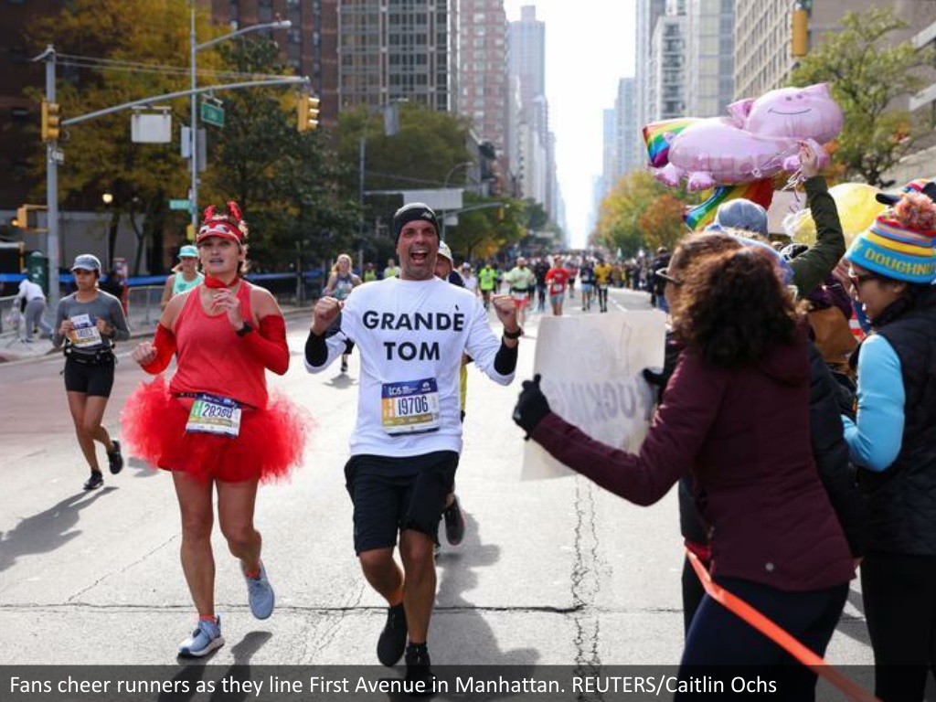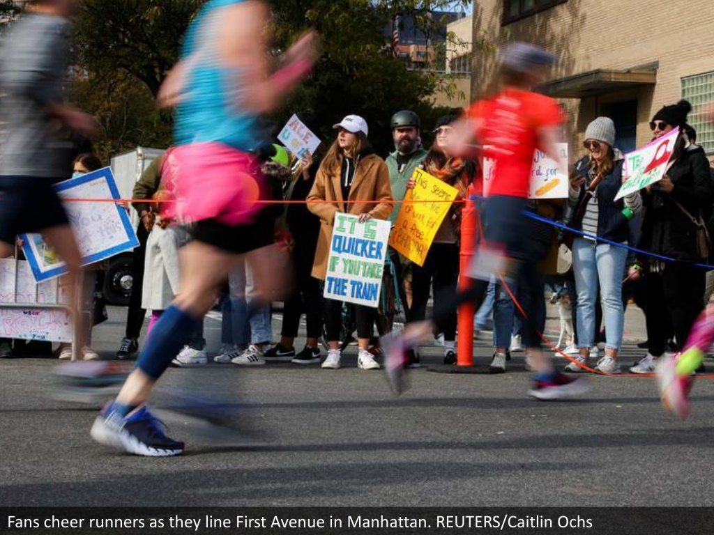 Fans cheer runners as they line First Avenue in Manhattan. REUTERS/Caitlin Ochs