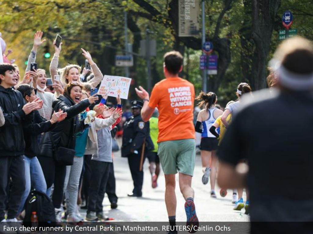 Fans cheer runners by Central Park in Manhattan. REUTERS/Caitlin Ochs
