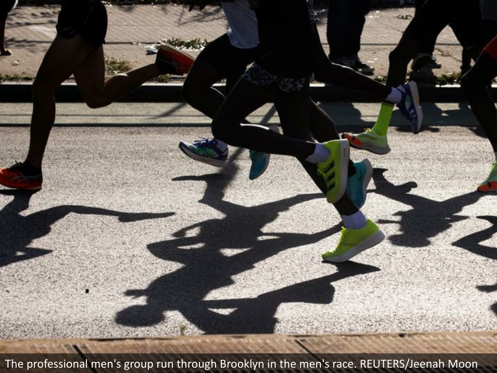 The professional men's group run through Brooklyn in the men's race. REUTERS/Jeenah Moon