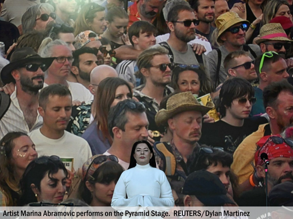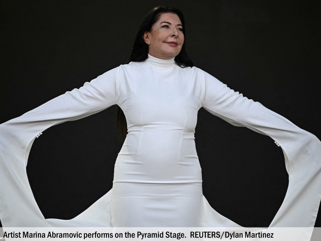 Artist Marina Abramovic performs on the Pyramid Stage. REUTERS/Dylan Martinez