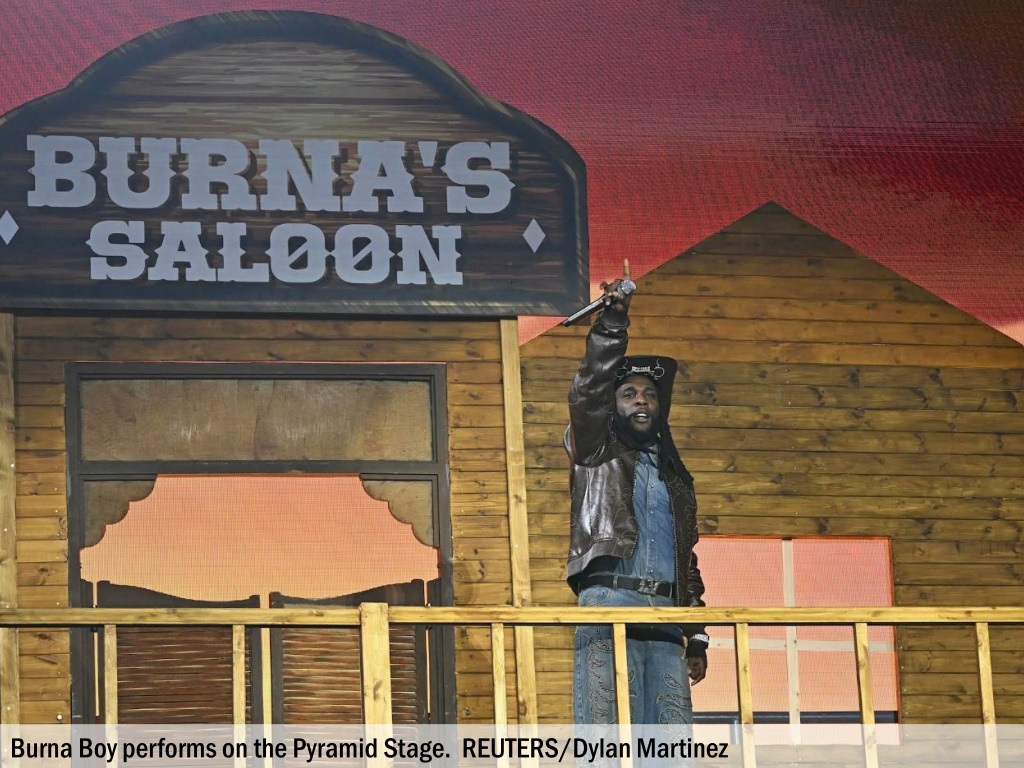 Burna Boy performs on the Pyramid Stage. REUTERS/Dylan Martinez