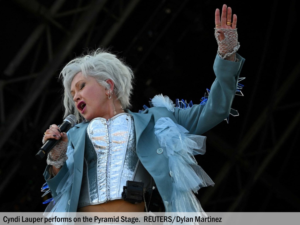 Cyndi Lauper performs on the Pyramid Stage. REUTERS/Dylan Martinez