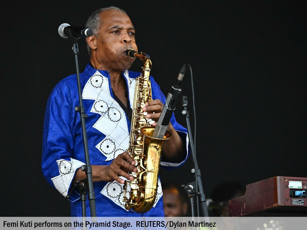 Femi Kuti performs on the Pyramid Stage. REUTERS/Dylan Martinez