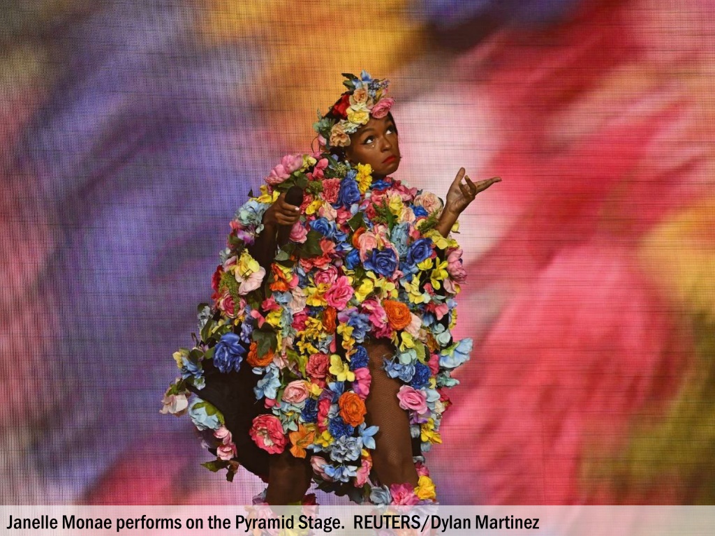 Janelle Monae performs on the Pyramid Stage. REUTERS/Dylan Martinez