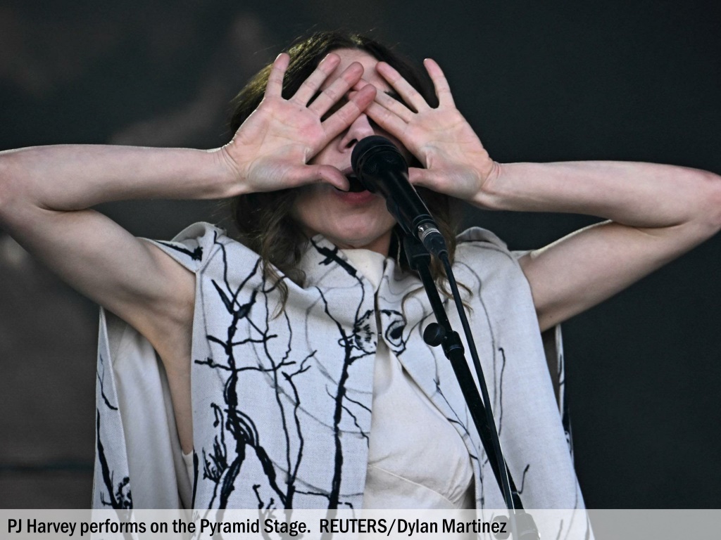 PJ Harvey performs on the Pyramid Stage. REUTERS/Dylan Martinez