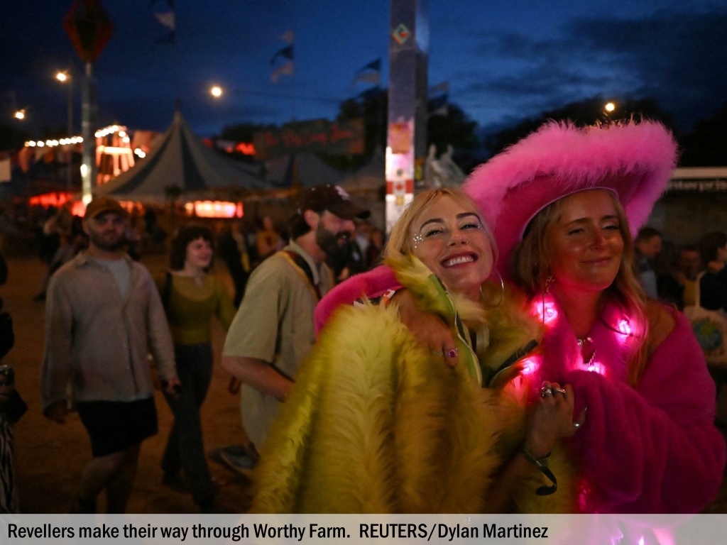 Revellers make their way through Worthy Farm. REUTERS/Dylan Martinez