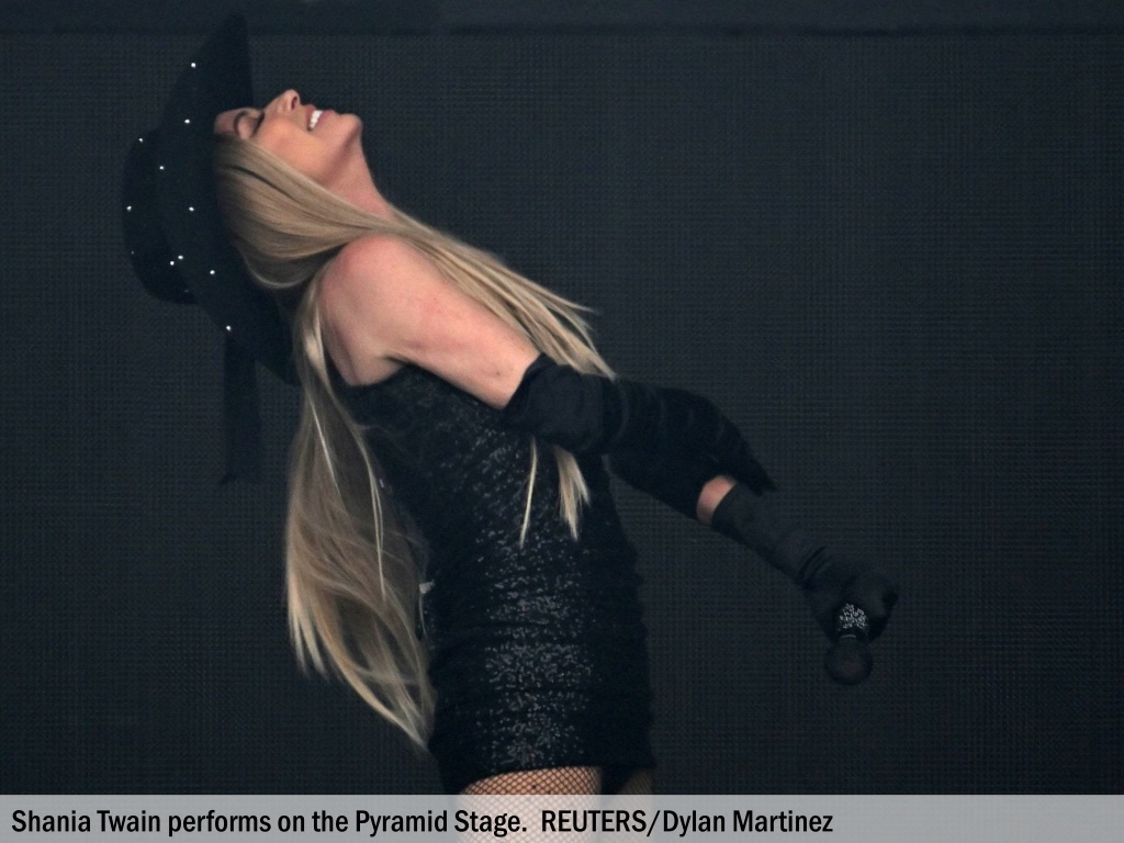 Shania Twain performs on the Pyramid Stage. REUTERS/Dylan Martinez