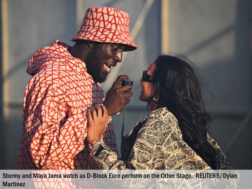 Stormy and Maya Jama watch as D-Block Euro perform on the Other Stage. REUTERS/Dylan Martinez