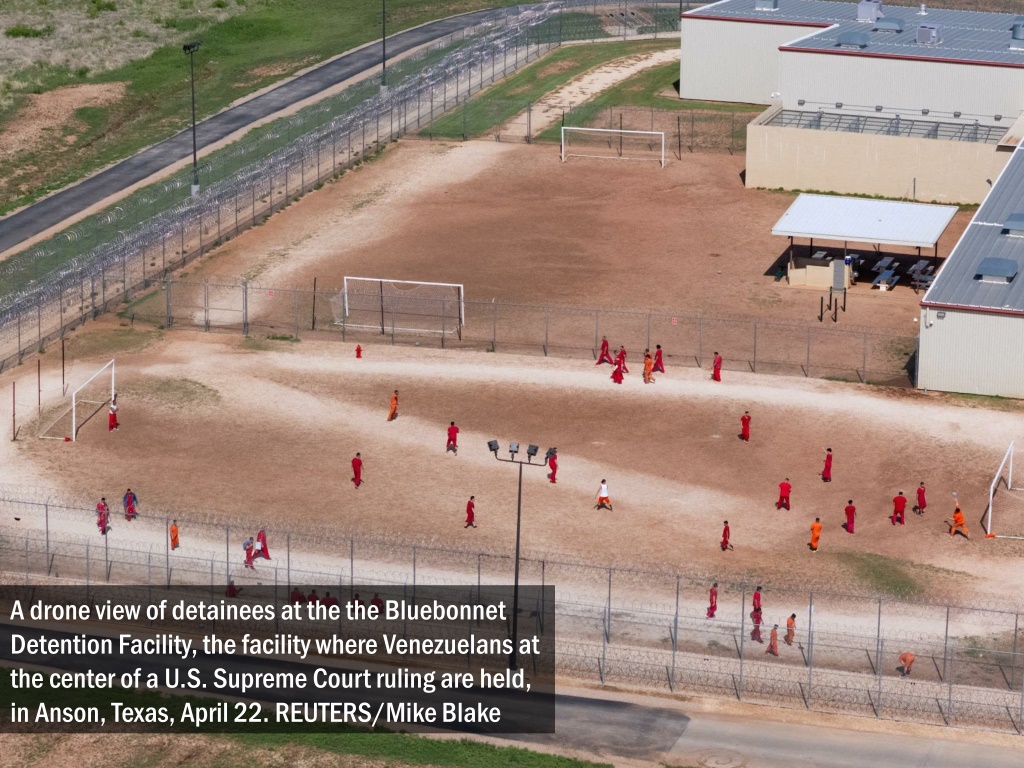 A drone view of detainees at the the Bluebonnet Detention Facility, the facility where Venezuelans at the center of a U.S. Supreme Court ruling are held, in Anson, Texas, April 22. REUTERS/Mike Blake