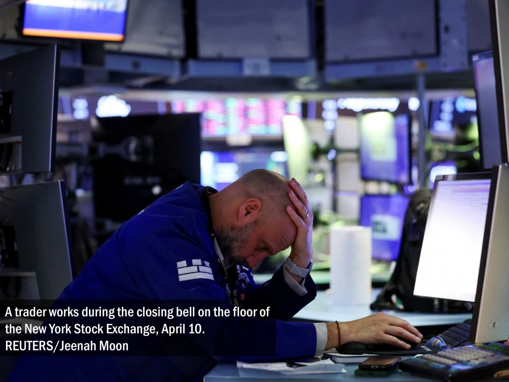 A trader works during the closing bell on the floor of the New York Stock Exchange, April 10. REUTERS/Jeenah Moon