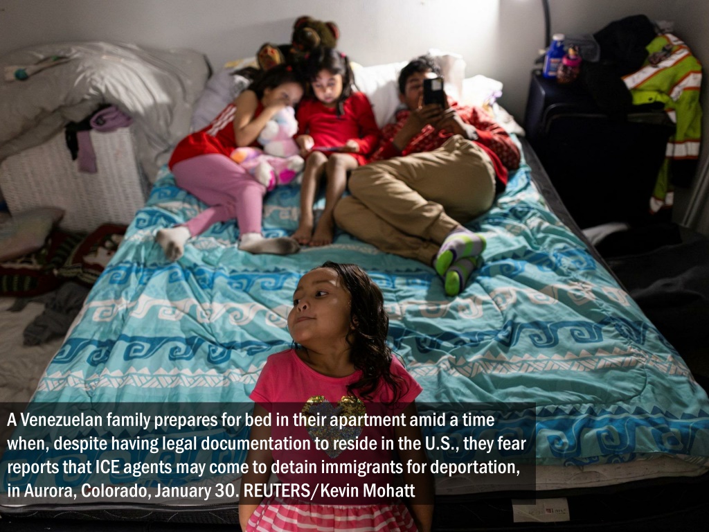 A Venezuelan family prepares for bed in their apartment amid a time when, despite having legal documentation to reside in the U.S., they fear reports that ICE agents may come to detain immigrants for deportation, in Aurora, Colorado, January 30. REUTERS/Kevin Mohatt