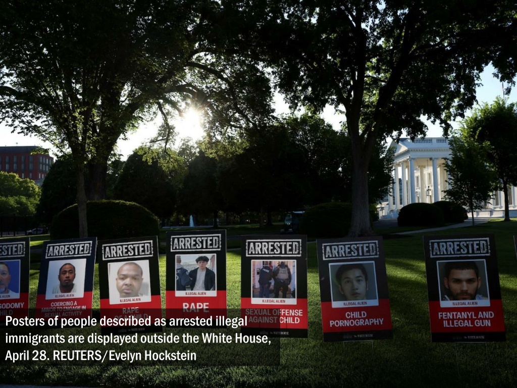 Posters of people described as arrested illegal immigrants are displayed outside the White House, April 28. REUTERS/Evelyn Hockstein