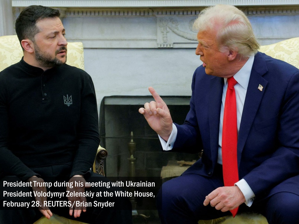 President Trump during his meeting with Ukrainian President VolodymyrZelenskiy at the White House, February 28. REUTERS/Brian Snyder