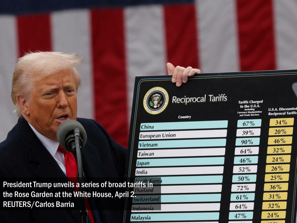 President Trump unveils a series of broad tariffs in the Rose Garden at the White House, April 2. REUTERS/Carlos Barria