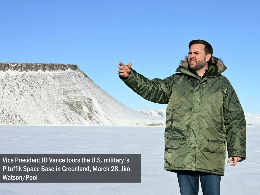 Vice President JD Vance tours the U.S. military's Pituffik Space Base in Greenland, March 28. Jim Watson/Pool