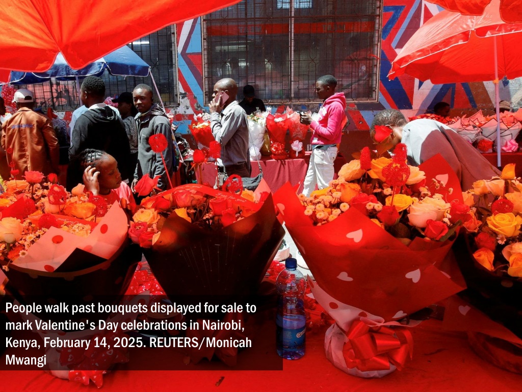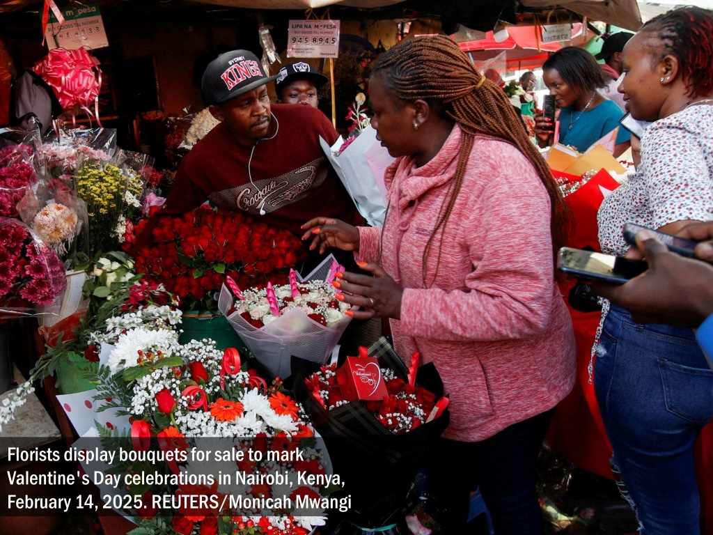Florists display bouquets for sale to mark Valentine's Day celebrations in Nairobi, Kenya, February 14, 2025. REUTERS/Monicah Mwangi