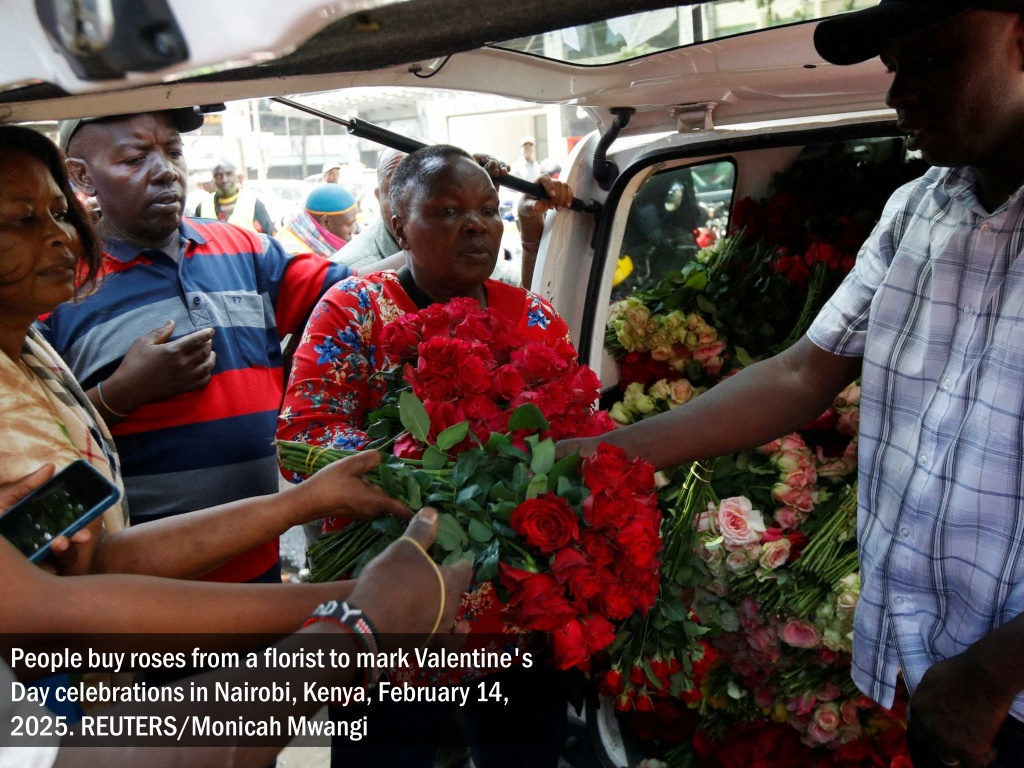 People buy roses from a florist to mark Valentine's Day celebrations in Nairobi, Kenya, February 14, 2025. REUTERS/Monicah Mwangi
