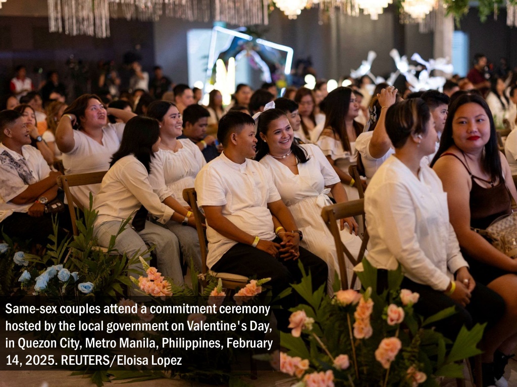 Same-sex couples attend a commitment ceremony hosted by the local government on Valentine's Day, in Quezon City, Metro Manila, Philippines, February 14, 2025. REUTERS/Eloisa Lopez