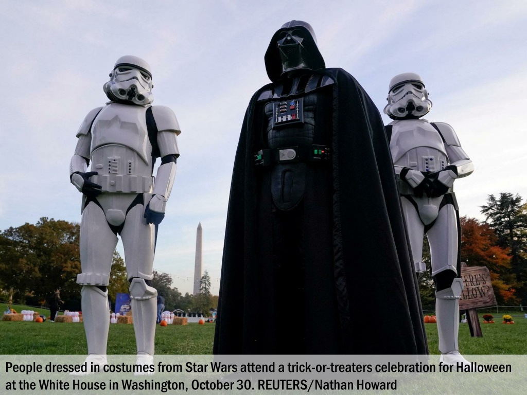 People dressed in costumes from Star Wars attend a trick-or-treaters celebration for Halloween at the White House in Washington, October 30. REUTERS/Nathan Howard