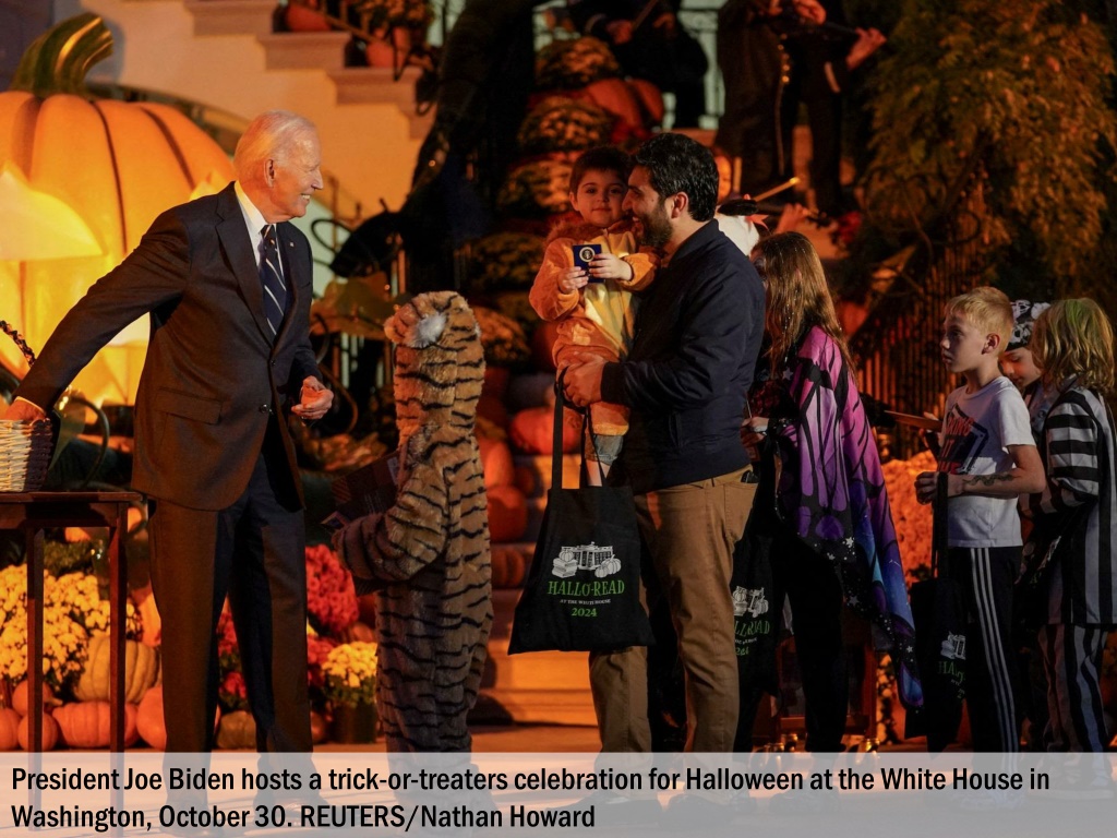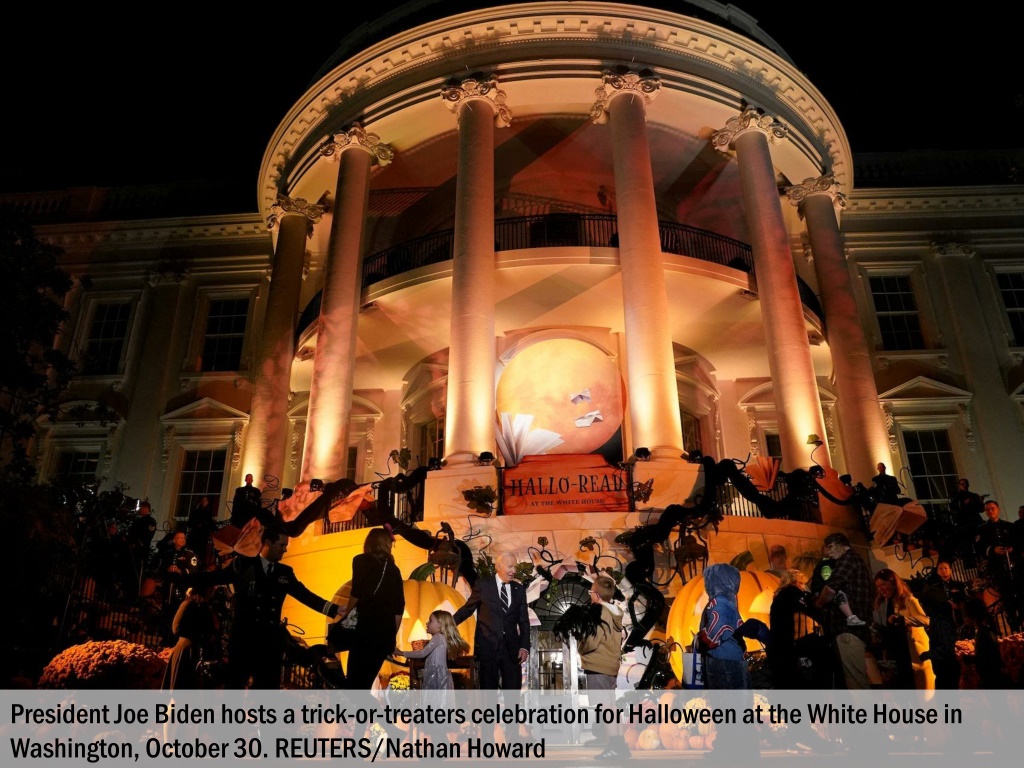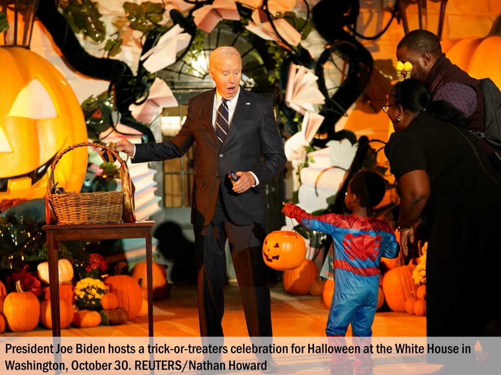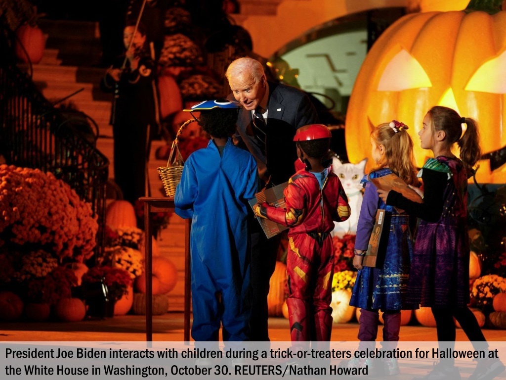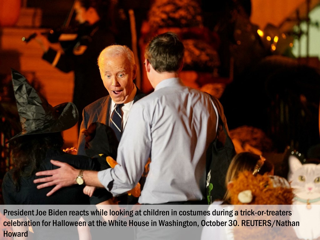 President Joe Biden hosts a trick-or-treaters celebration for Halloween at the White House in Washington, October 30. REUTERS/Nathan Howard